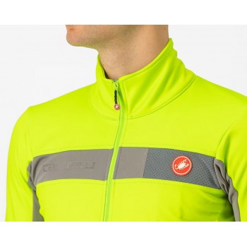 CHAQUETA CASTELLI MORTIROLO 6S LIMA La mezcla de materiales Softshell impermeables al viento con interior en fleece de diferentes espesores y lycra invernal garantiza calor sin sobrecalentarse. La chaqueta Mortirolo es ideal para el entrenamiento ciclista intenso en días frescos pero bastante secos.