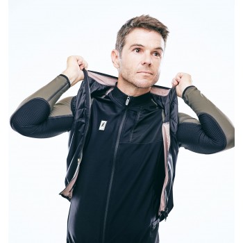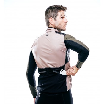 Confeccionado con membrana bidireccional, las propiedades del chaleco son las mismas por ambos lados. La zona lumbar está confeccionada con tejido de rejilla para aumentar la transpirabilidad acabado con un ribete reflectante. Además, dispone de 2 aperturas lumbares para acceder de forma rápida y fácil a los bolsillos del maillot.