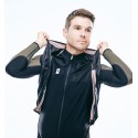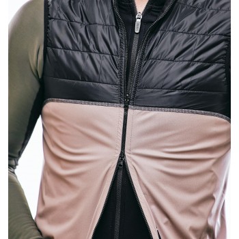 Tiene una cremallera integral con sistema antipull y doble carro para poder abrirlo en ambas direcciones. La zona de las axilas están acabadas con un ribete elástico que se ajusta al cuerpo y evita la entrada de aire, aumentando la aerodinámica. En la cintura tiene una banda elástica con un grip de silicona antideslizante en el interior para mantener el chaleco bien ajustado al cuerpo.